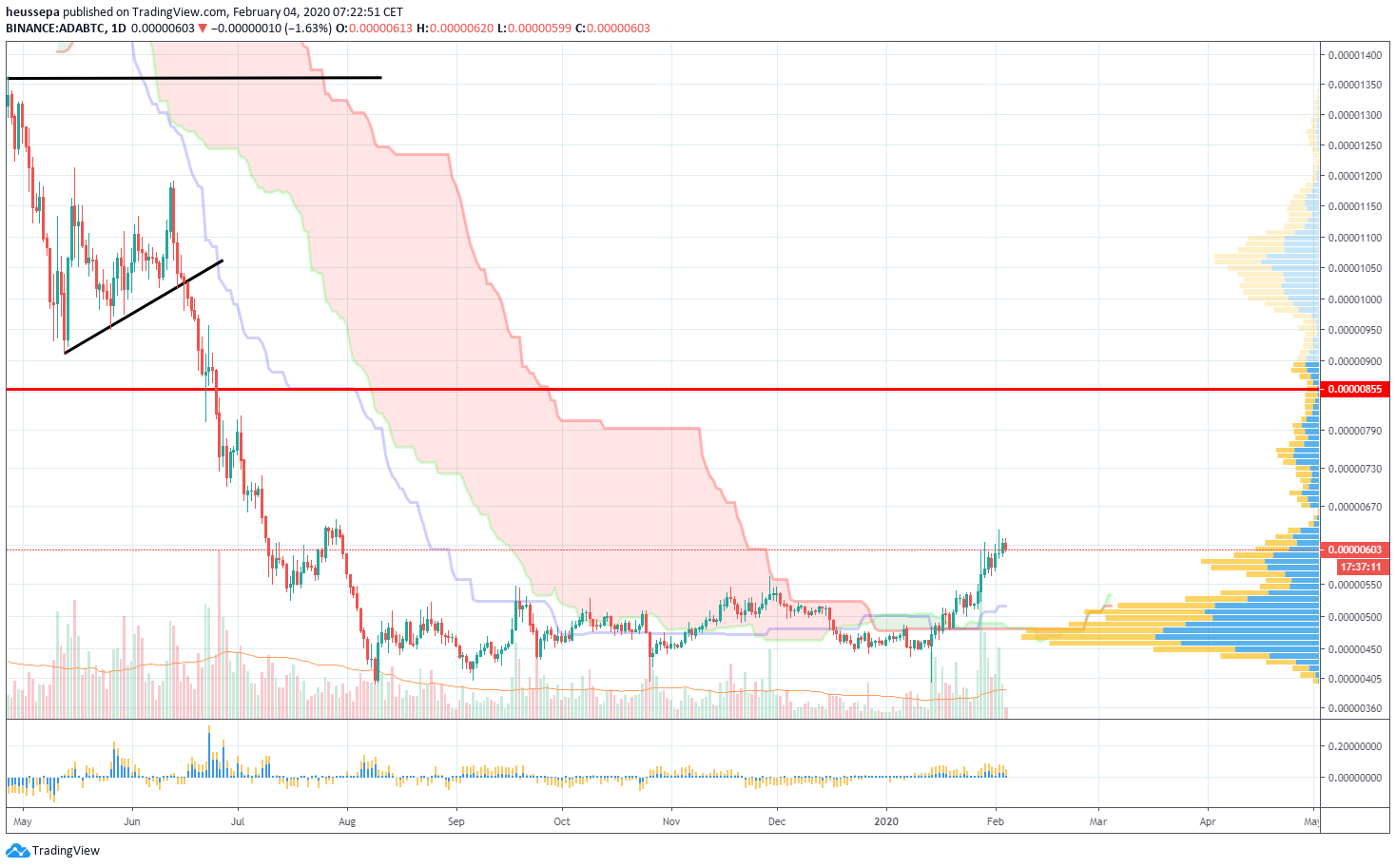 Wir haben es gerade geschafft, eine ziemlich wichtige s/r-Linie bei 0,45 $ zu durchbrechen. Wir werden sehen, ob wir in der Lage sein werden, uns um dieses Niveau zu konsolidieren, um danach für einen Angriff auf die 1-Dollar-Marke bereit zu sein.