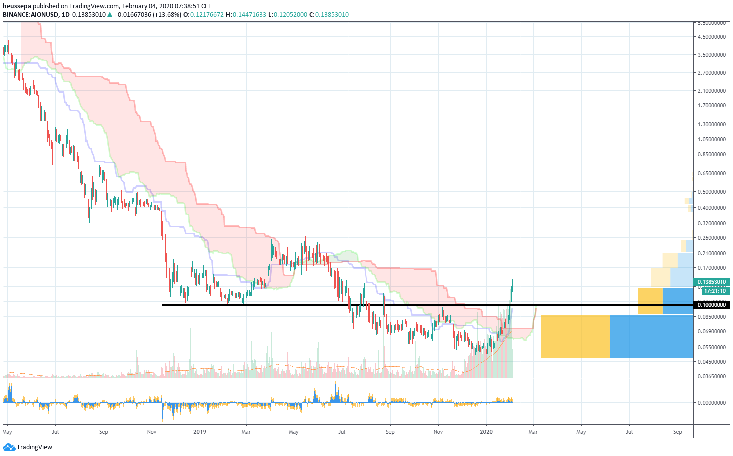 Dies ist ein Coin mit einer Preisbewegung, die das Etikett "parabolisch" verdient. Seit Anfang des Jahres hat sich der Preis um etwa +400% mit einem ordentlichen Volumen bewegt.