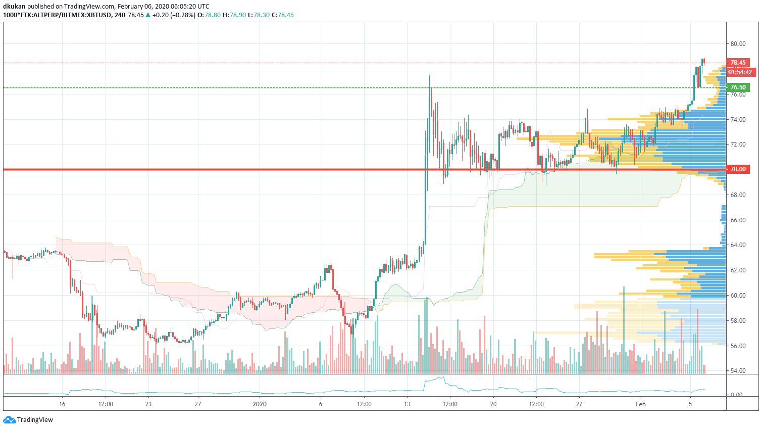 ALT: Chart Unterstützung 70 / Widerstand 76,5 / ALT 4h