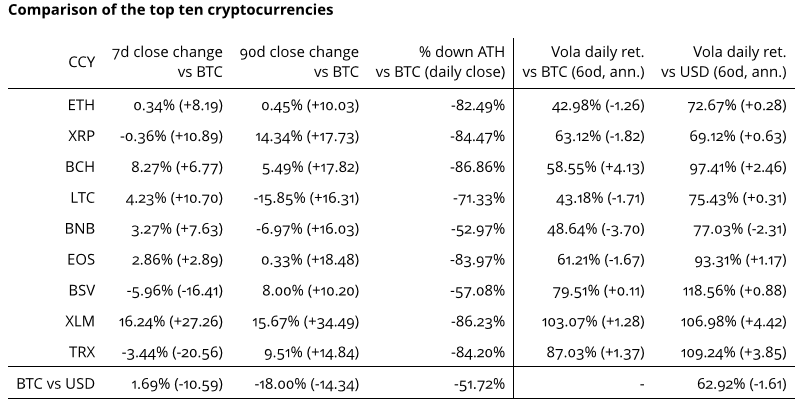 Tabelle 2: Datenquelle: Coinmarketcap; Veränderung gegenüber Vorwoche in Klammern
