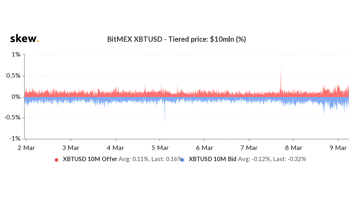 Die BTC$-Mar20-Basis ist jetzt fast flach und das gleiche gilt für die ETH$-Mar20-Basis, die am Wochenende kurzzeitig sogar von Contango in Backwardation getaucht ist. Die Kurve hat sich abgeflacht, da sich der Spread des Jun20/Sep20-Kalenders um 70 Dollar verengt hat: von 250 Dollar auf 180 Dollar.