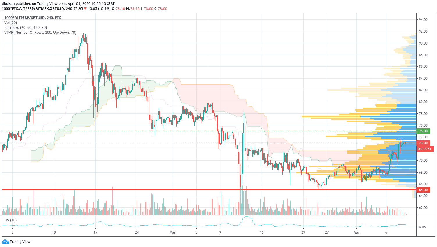 Alt: Unterstützung 65.00 / Widerstand 75.00 / Alt (4h)
