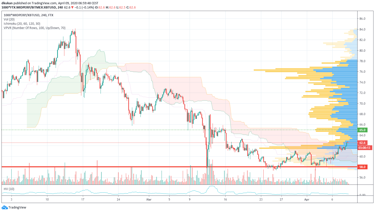 Mid: Unterstützung 58.00 / Widerstand 65.00 / Mid (4h)