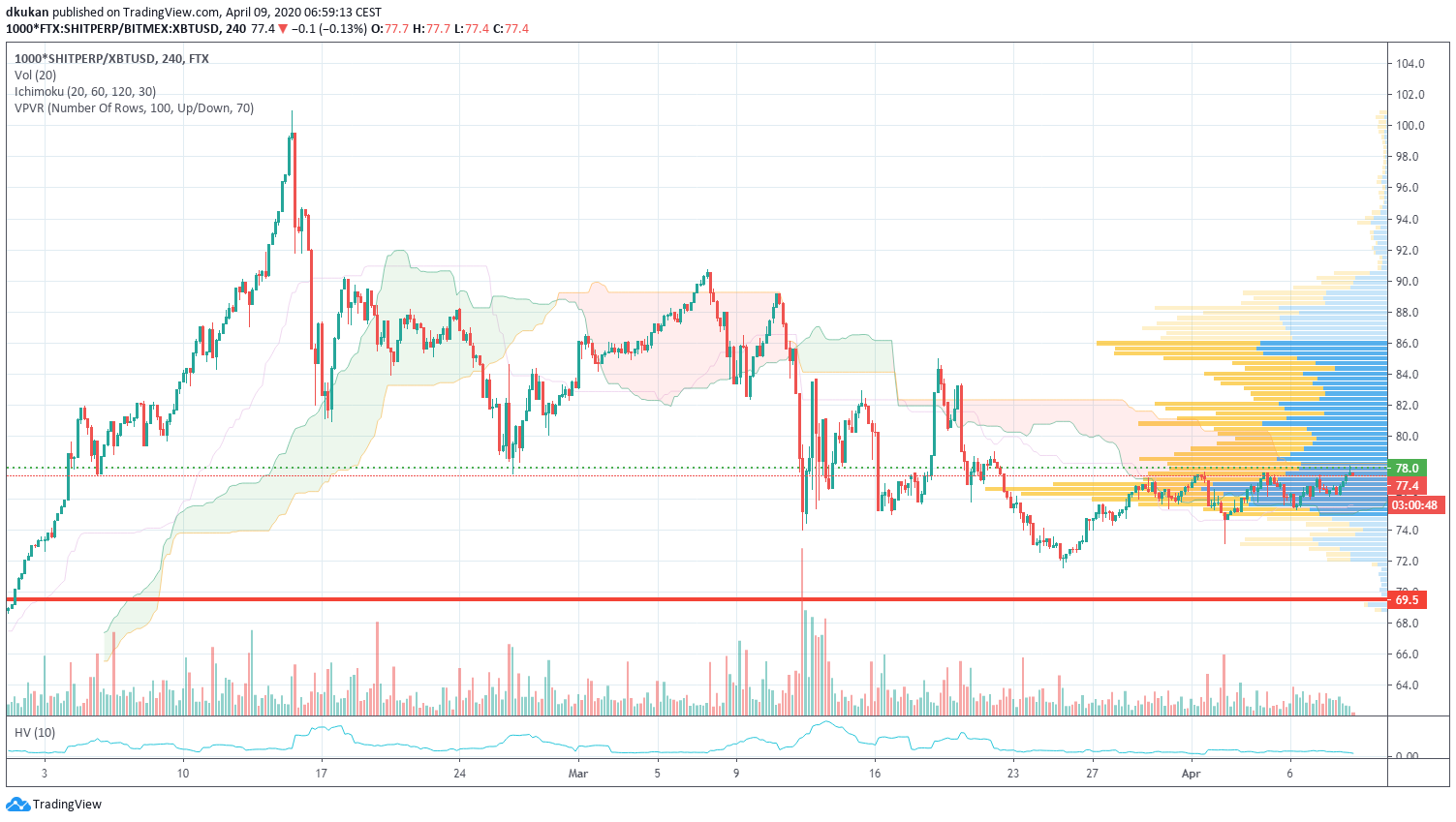 Shit: Unterstützung 69.50 / Widerstand 78.00 / Shit (4h)