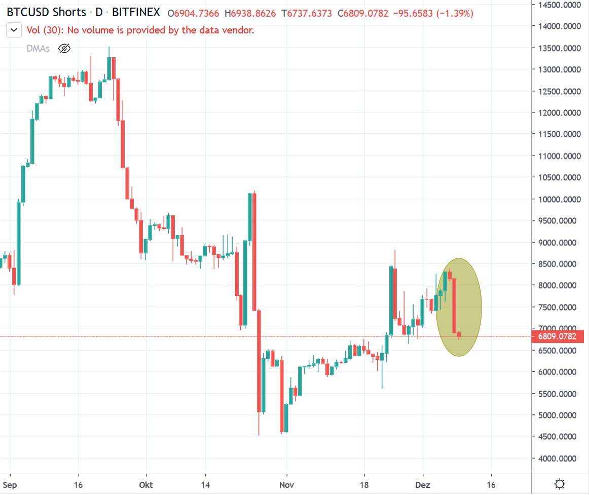 Einige grössere Trader haben in den letzten Tagen mit dem Abbau ihrer Positionen begonnen. Zumindest haben wir das von anderen OTC Trading Desks gehört. Ein anderer schloss am Wochenende seine Short-Position im BTC-Bereich. Er lieferte 1'000 Coins auf sein Bitfinex-Konto und schloss eine Margin-Short-Position.