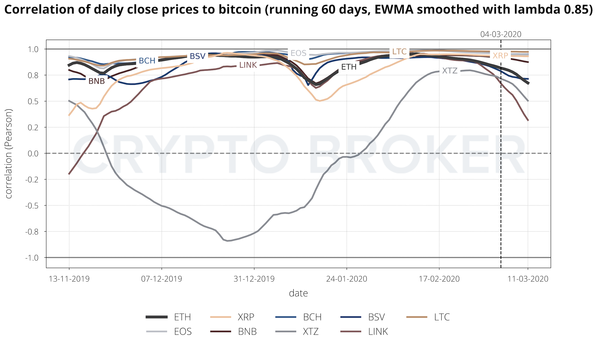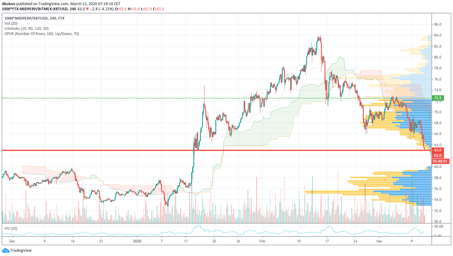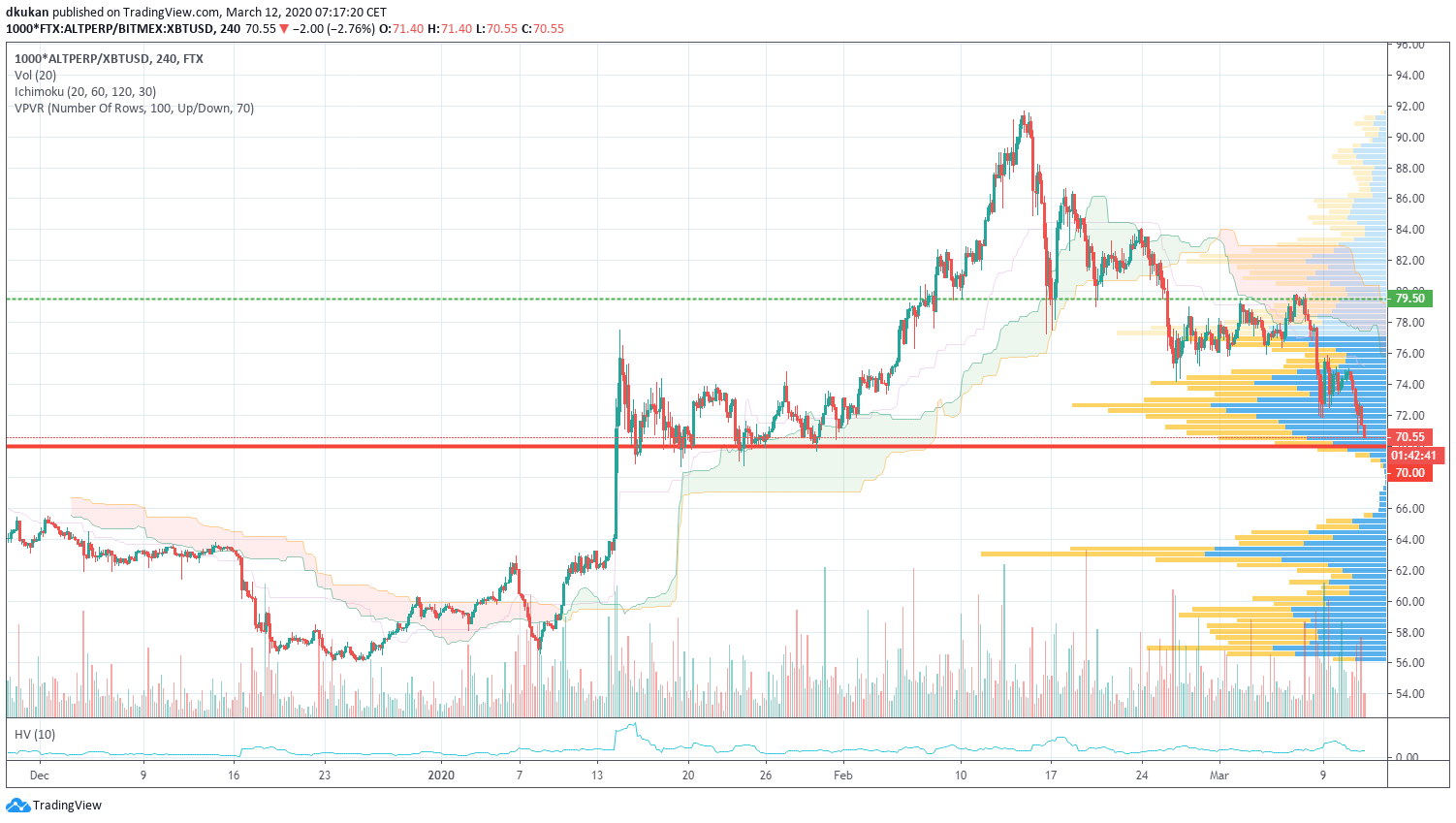 Der traditionelle Markt ist immer noch schwach und reagiert sehr empfindlich auf alle Nachrichten. Die Erwartungen sind hoch, dass die Behörden sowohl bei der Bekämpfung des Virus als auch bei der Hilfe für die Wirtschaft finanzielle Unterstützung und Erleichterungen gewähren werden. Die Unterstützungslinie von 8.500 wurde leicht durchbrochen und derzeit testen wir die 7.500er Marke. Die allgemeine Stimmung auf dem Markt ist immer noch recht zerbrechlich. Die nächste wichtige Unterstützungslinie wird bei 6.500 liegen. Die wöchentliche Rotation erfolgte in Alt-Coins gegen BTC.