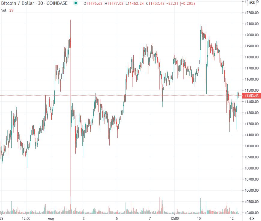 Bitcoin (BTC) wurde in der frühen Morgenstunden auf einem Tief von ca. 11'100 und einem Hoch von 11'940 gehandelt. Sogar bei einer Handelsspanne von 840 Punkten ging die Futures-Prämie im Vormonat noch um einige Punkte zurück. Generell entspannte sich die Derivate-Prämie über den gesamten Handelstag etwas. Die kurzfristige BTC-Unterstützung von 10'500 und der Widerstand von 12'000 bleiben unverändert. Das gehandelte Volumen in Bitcoin (BTC) und Ethereum (ETH) nahm zu, als Leute im Laufe des Tages Gewinne mitnahmen. Die implizite Volatilität hat sich insgesamt nicht wesentlich verändert und die Laufzeitstruktur bleibt steil. Alt- und MID-Index entwickelten sich ähnlich wie Bitcoin (BTC), während der SHIT-Index etwas schlechter als Bitcoin (BTC) abschnitt.