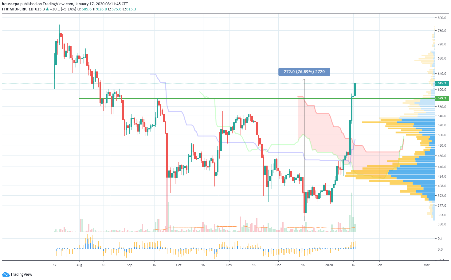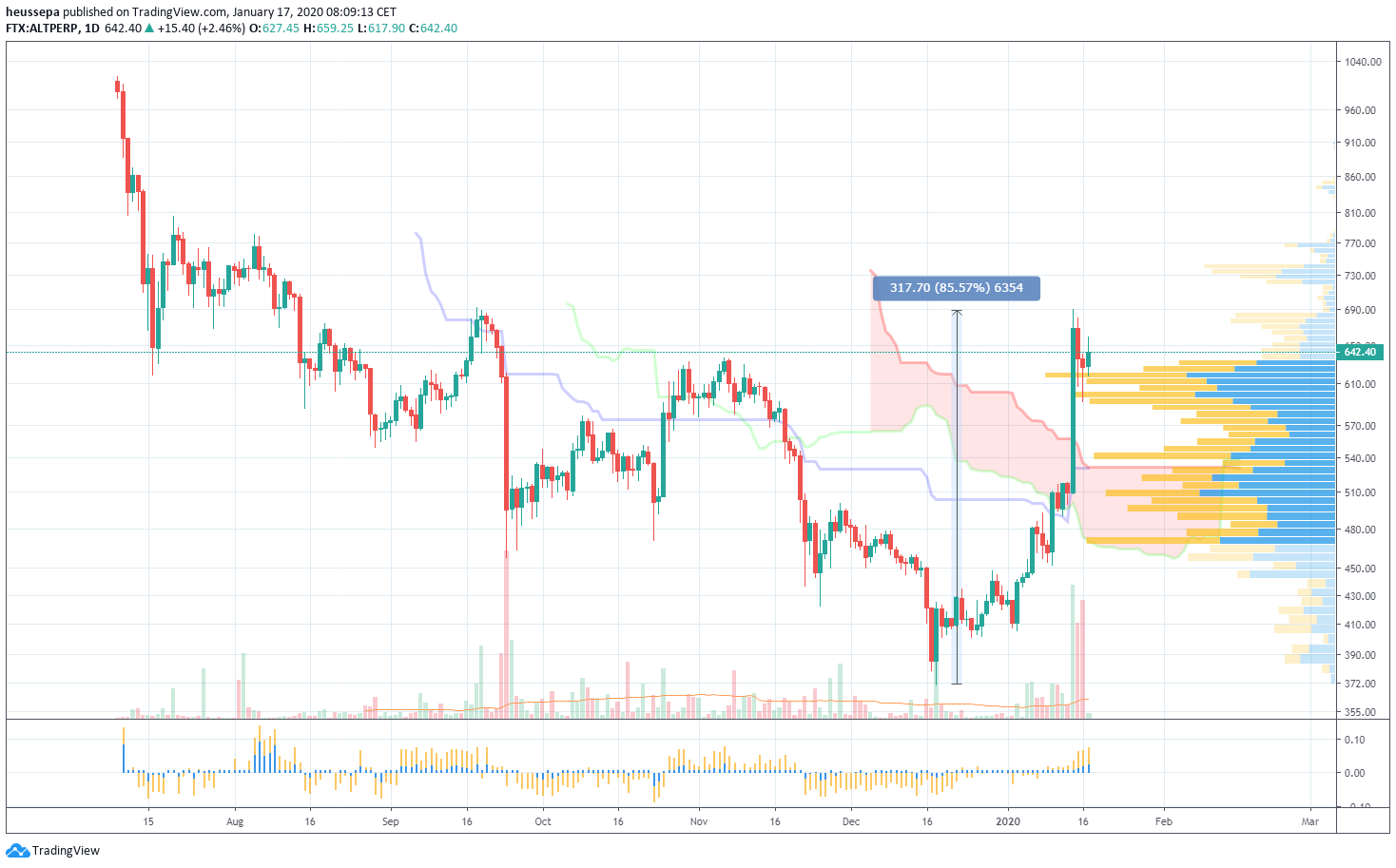 Beim FTX Midcoin Index sehen wir eine sehr ähnliche Entwicklung. Von den Tiefstständen vor einem Monat sind wir um etwa 75% gestiegen.