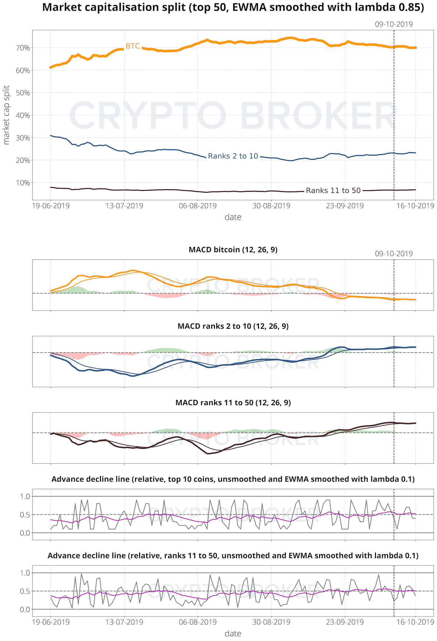 Das Gesamtbild sieht für die Altcoins mit tiefen Marktkapitalisierungen ziemlich ähnlich aus. Es gibt eine ziemlich starke Rotation innerhalb des Sektors, aber insgesamt ist das Verhältnis eher neutral gegenüber Bitcoin.