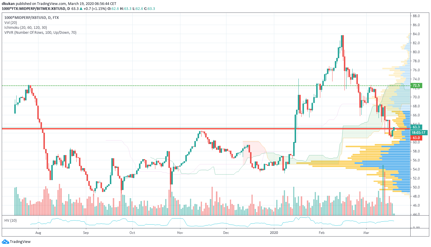Mid: Unterstützung 63.00 / Widerstand 72.50 / MID (4h)