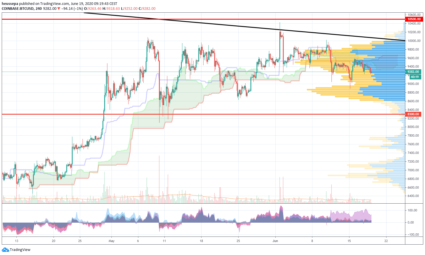 Lassen Sie uns sehen, ob einige Wochenendaktionen den Markt wieder in Schwung bringen werden. Charttechnisch befinden wir uns in der Mitte einer breiten Spanne: 8,5-10,5k.