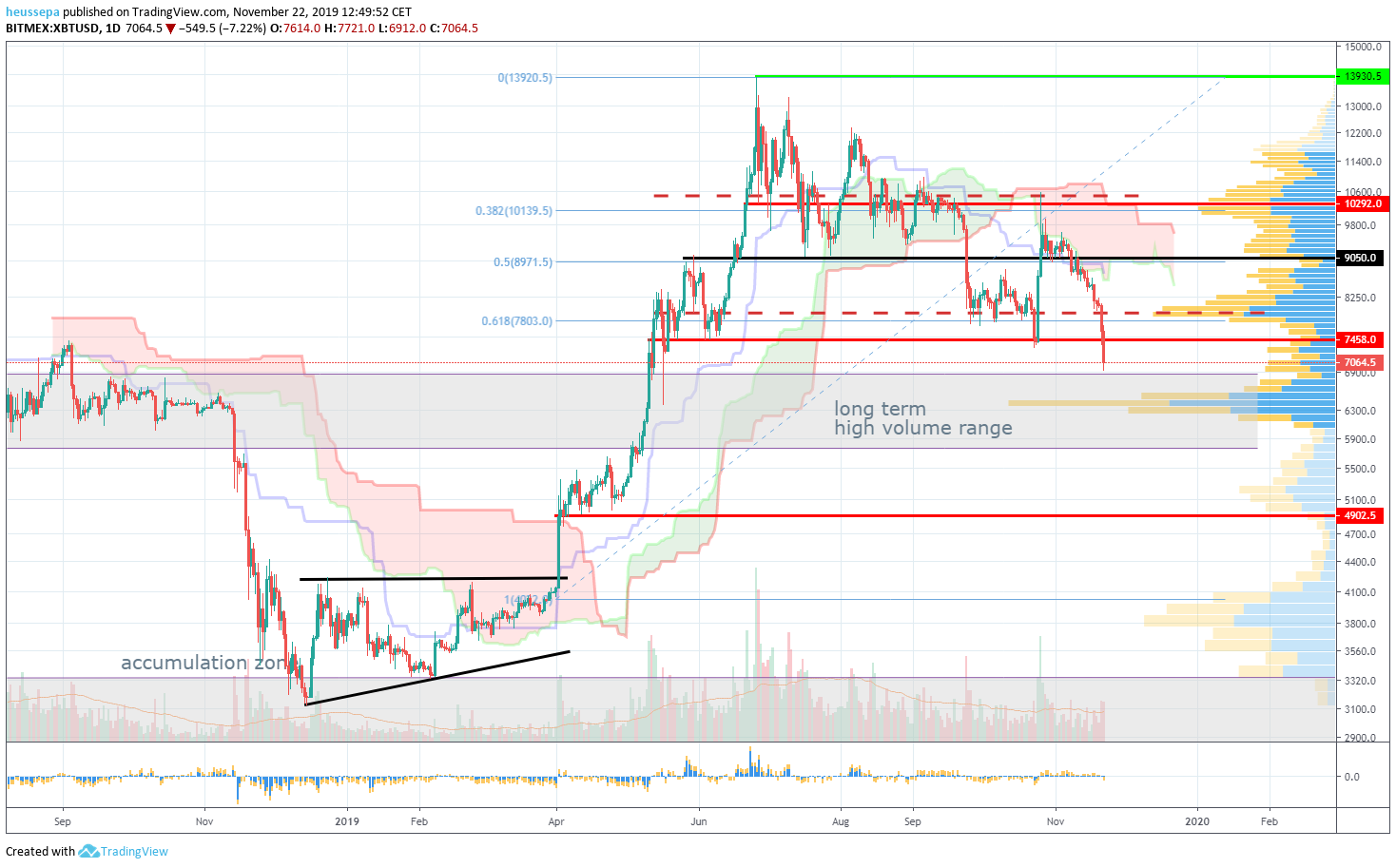 Verkaufsdruck bringt Bitcoin an die 7'000 USD Marke