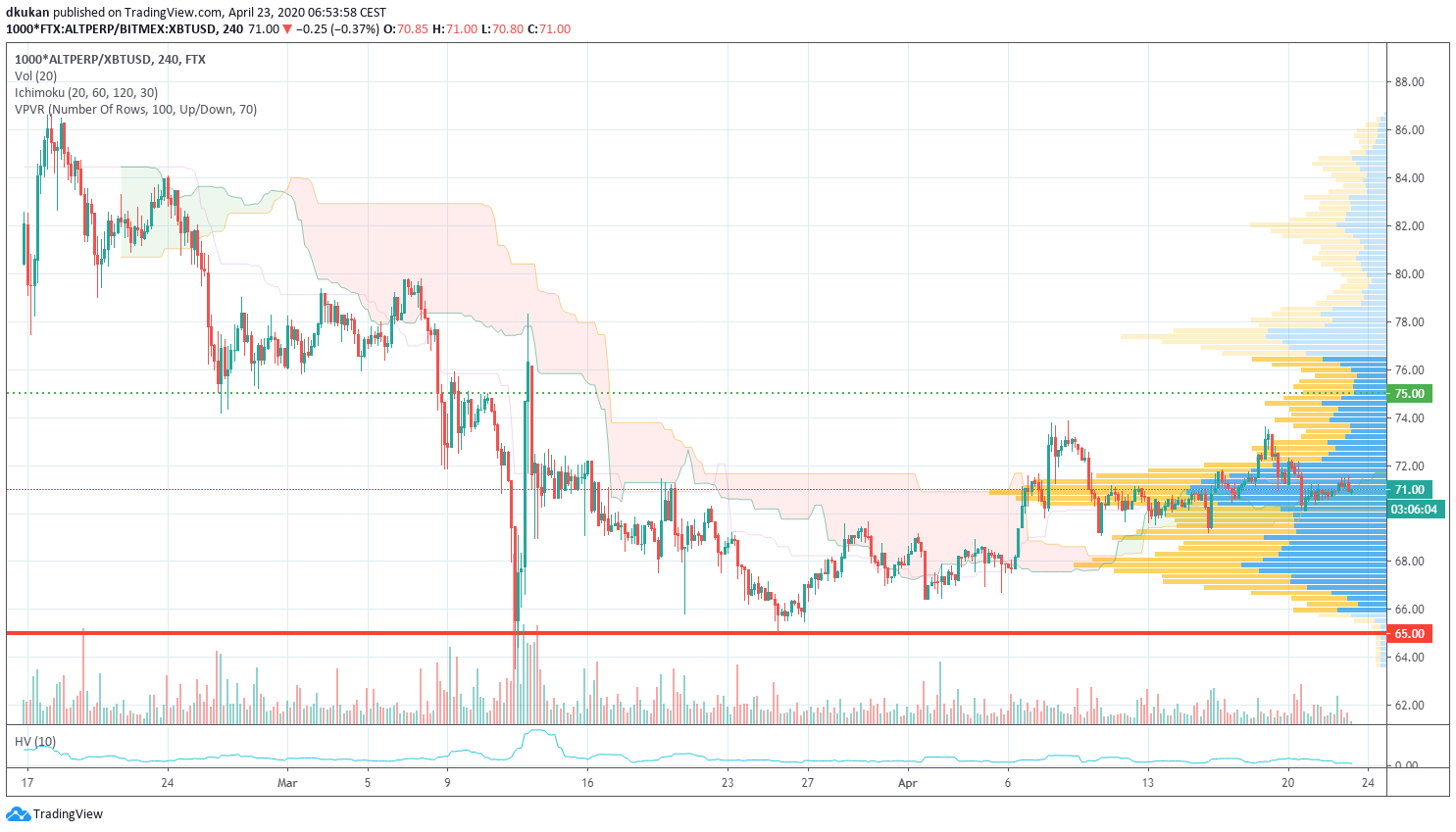 Alt: Unterstützung 65.00 / Widerstand 75.00 / Alt (4h)