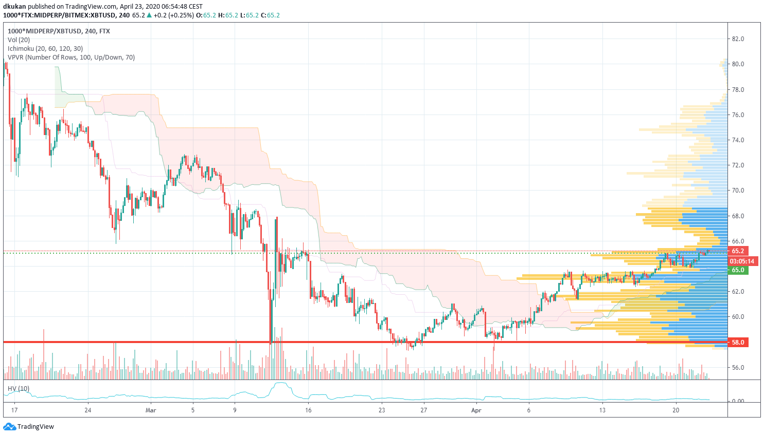 Mid: Unterstützung 58.00 / Widerstand 65.00 / Mid (4h)