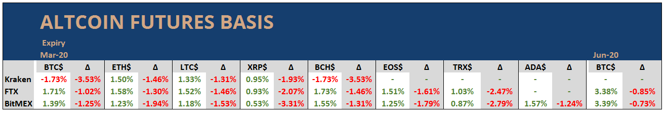 Ein Faktor, der mir ein optimistisches Bauchgefühl gibt, ist die ETH$-Mar20-Basis. Diese Basis korrigierte ziemlich gut in Richtung eines weitaus normaleren Niveaus, was uns zeigt, dass ein grosser Teil der gehebelten Long-Positionen bereinigt wurde.