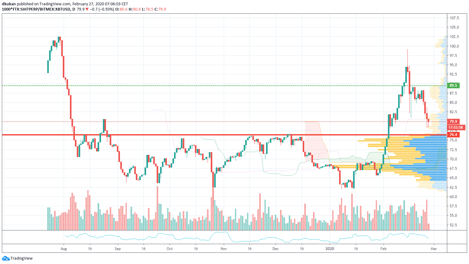 Shit: Unterstützung 76.40 / Widerstand 89.50 / Shitcoin index (4-hour)