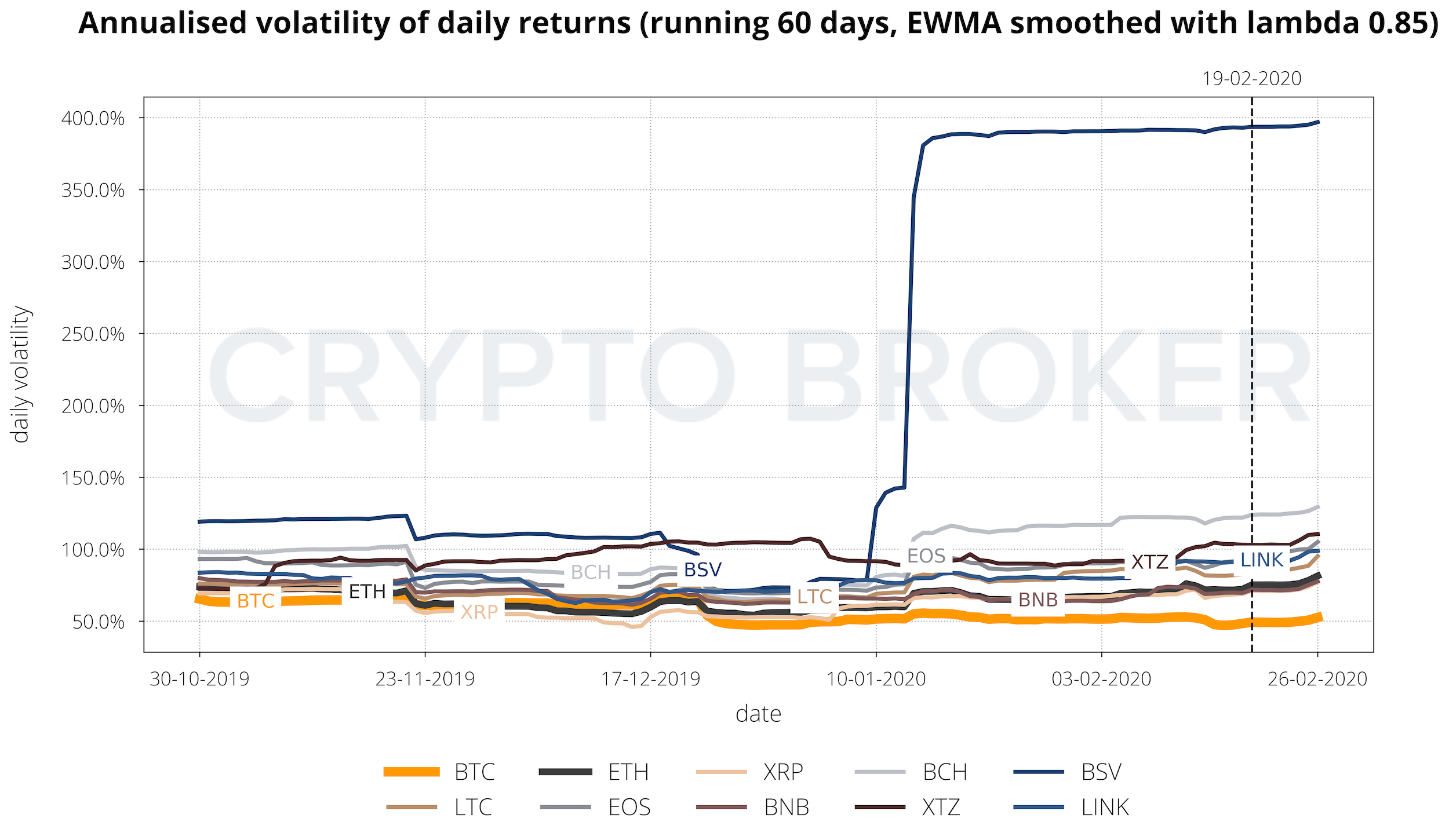 Nach der gestrigen Korrektur hat sich die Lage normalisiert. Generell wird die Basis in den BTC- und ETH-Kontrakten vom März 2020 mit einer Prämie von 1,5% gehandelt. Die Börsen verzeichneten ein höheres Handelsvolumen mit steigendem Open Interest, trotz der grösseren Liquidationen von Positionen.