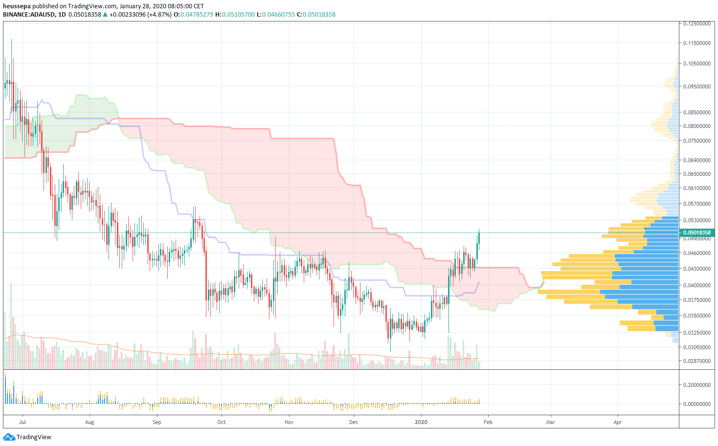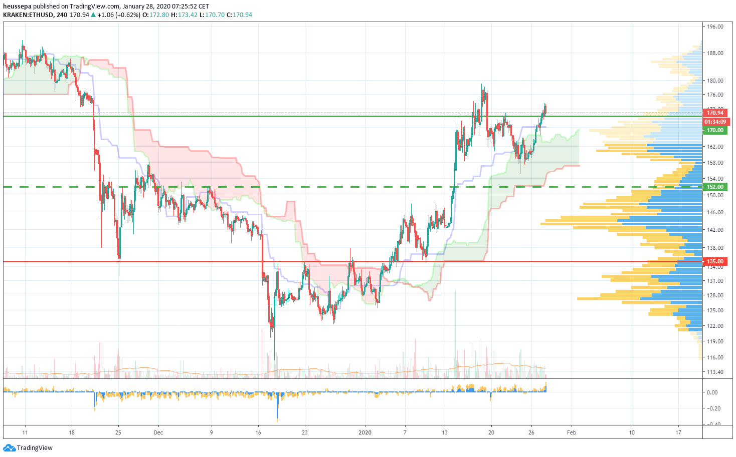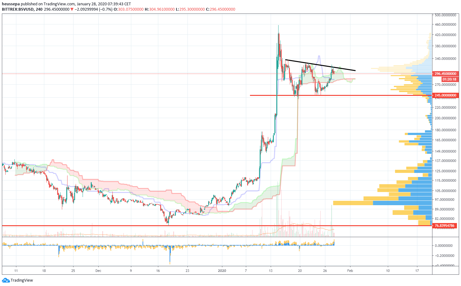 Es gibt noch kein klares Muster, aber es könnte sein, dass wir unser Stop-Lossl-Level (oder partial-take -profit) für die Longpositionen in Richtung 340 Dollar, dem oberen Band der Ichimoku-Cloud, erhöhen können.
