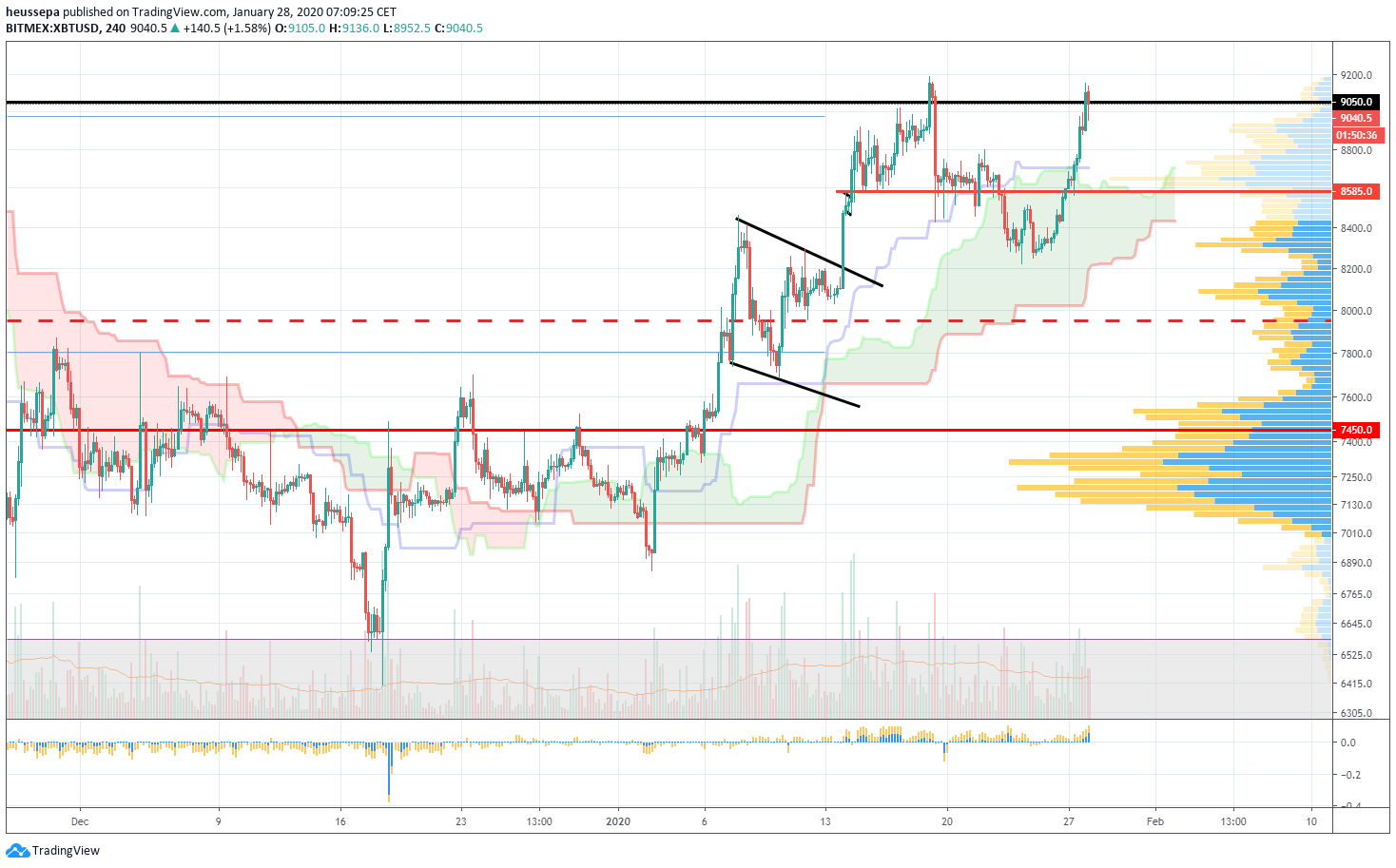 Die Korrektur erfolgte knapp nachdem wir unter die 9,2k-Marke gefallen waren. Der Markt drehte sich schnell um 8,2k und jetzt schlagen wir zum zweiten Mal bei 9,2 Tausend den Kopf an.