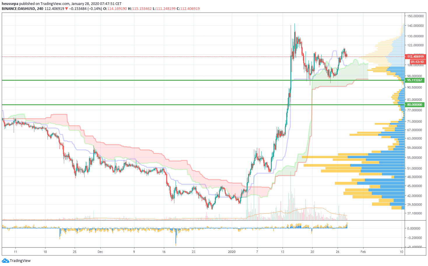 Der Markt fühlt sich mit dieser Aufwärtsbewegung ganz "okay" an. Es ist jedoch keine sehr starke und überzeugende Rallye, da uns das richtige Volumen fehlt. Dennoch ist es uns gelungen, über der Ichimoku-Cloud und dem s/r flip-Level bei etwa 8,6k durchzubrechen.
