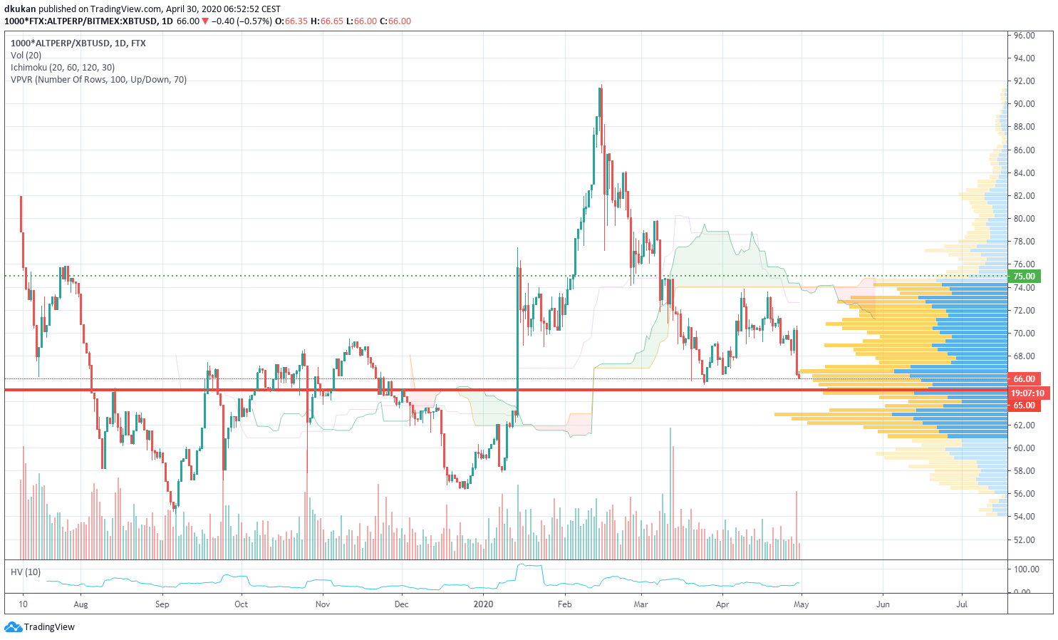 Alt: Unterstützung 65.00 / Widerstand 75.00 / Alt (4h)