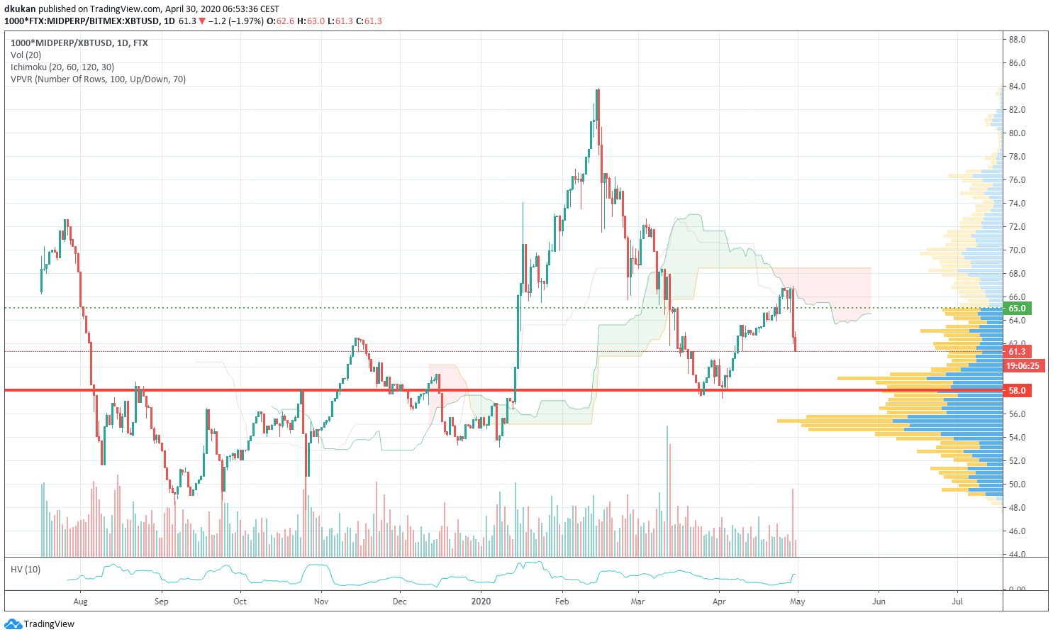 Mid: Unterstützung 58.00 / Widerstand 65.00 / Mid (4h)