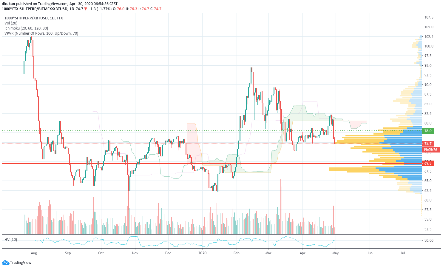 Shit: Unterstützung 69.50 / Widerstand 78.00 / Shit (4h)