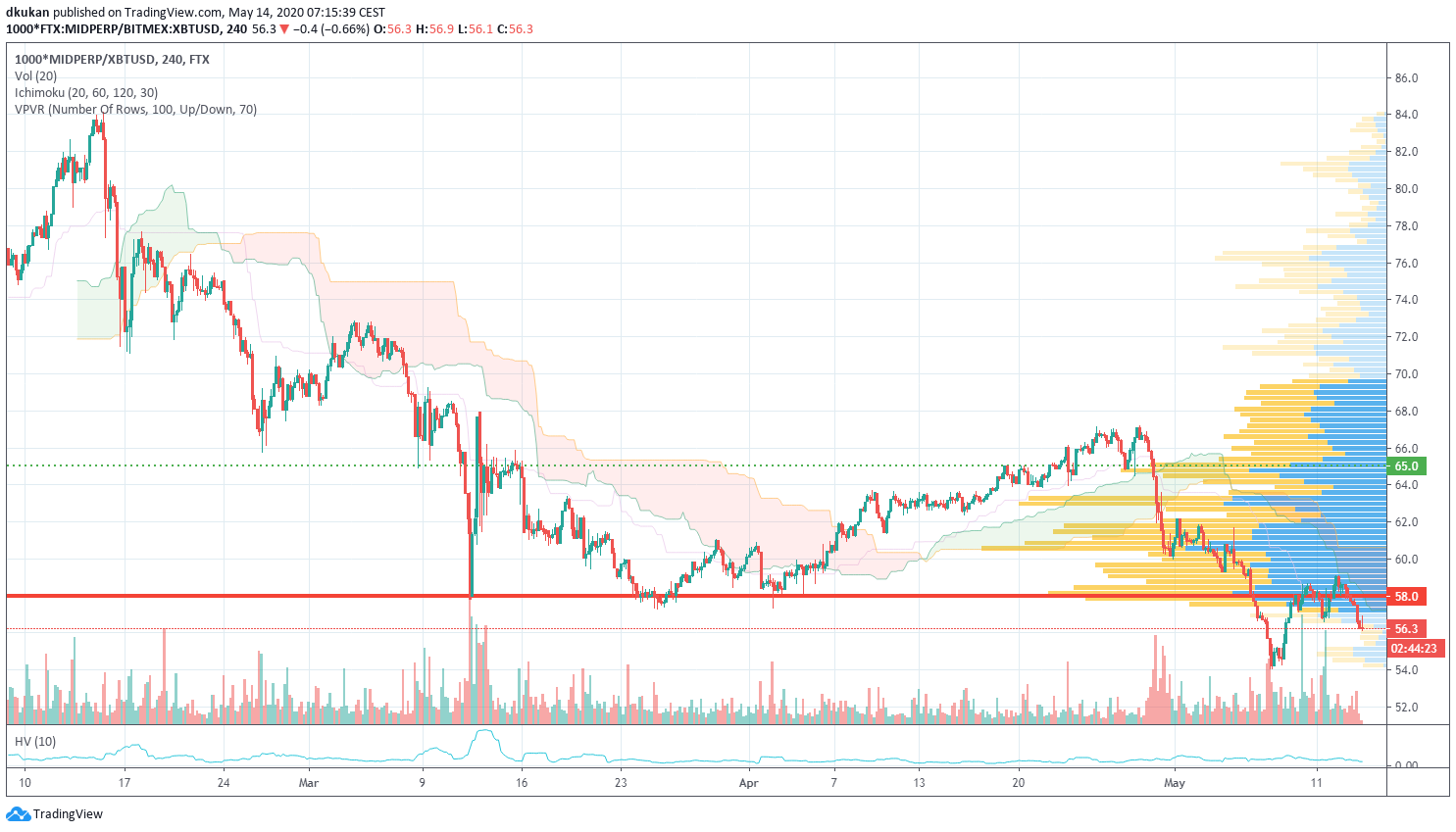 Mid: Unterstützung 58.00 / Widerstand 65.00 / Mid (4h)