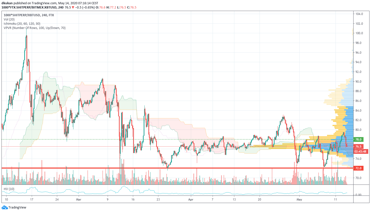 Shit: Unterstützung 69.50 / Widerstand 78.00 / Shit (4h)