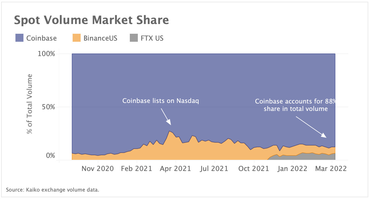 Der Wettbewerb um den US-Kryptomarkt, der eine bevorzugte Anlaufstelle für institutionelle Anleger ist, wird angesichts der zunehmenden Aufmerksamkeit der Regulierungsbehörden immer härter. Im vergangenen Jahr haben die weltweit grössten Börsen stark in diesen lukrativen Markt investiert, indem sie Super-Bowl-Werbung und Stadionsponsoring kauften und kräftig in Übernahmen investierten. Die bekanntesten Marktteilnehmer sind FTX und Binance, die jeweils eine US-Einheit gegründet haben, welche den Vorschriften entspricht. US-Händler haben heute keinen Zugang zu den globalen Versionen dieser Börsen, weshalb US-Tochtergesellschaften so wichtig sind.