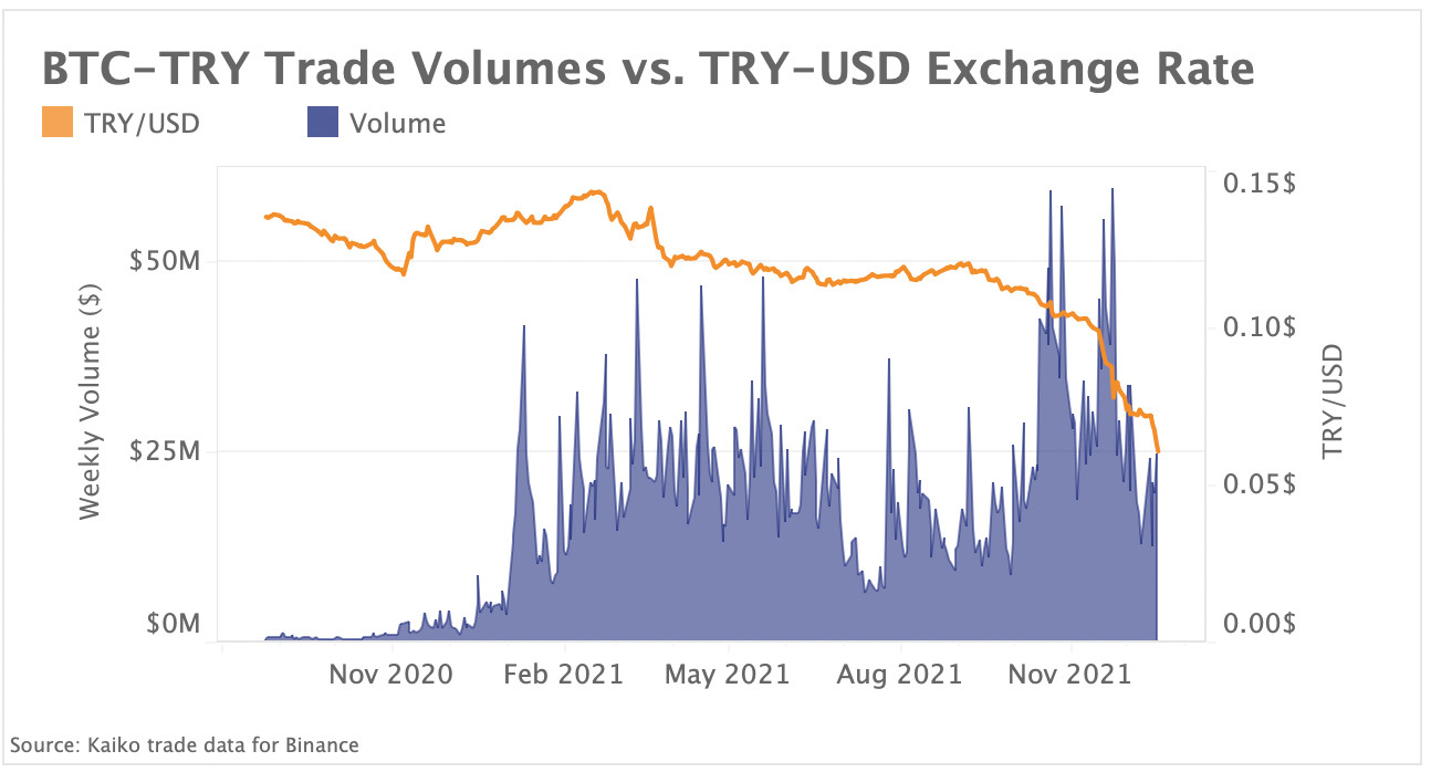 Selbst im Jahr 2021 leiden Länder noch unter Währungskrisen, die durch eine schlechte Geldpolitik verursacht werden. Was wir heute in der Türkei erleben, hat sich immer wieder ereignet und ist vielleicht eines der besten Argumente für dezentrale Kryptowährungen, welche gegen Manipulationen resistent sind. Die türkische Lira (TRY) ist auf einen historischen Tiefstand gefallen und die Inflation tobt. Das führt dazu, dass das BTC-TRY-Volumen auf ein Allzeithoch ansteigt, da die Anleger jeden sicheren Hafen suchen, um verheerende Verluste zu vermeiden.