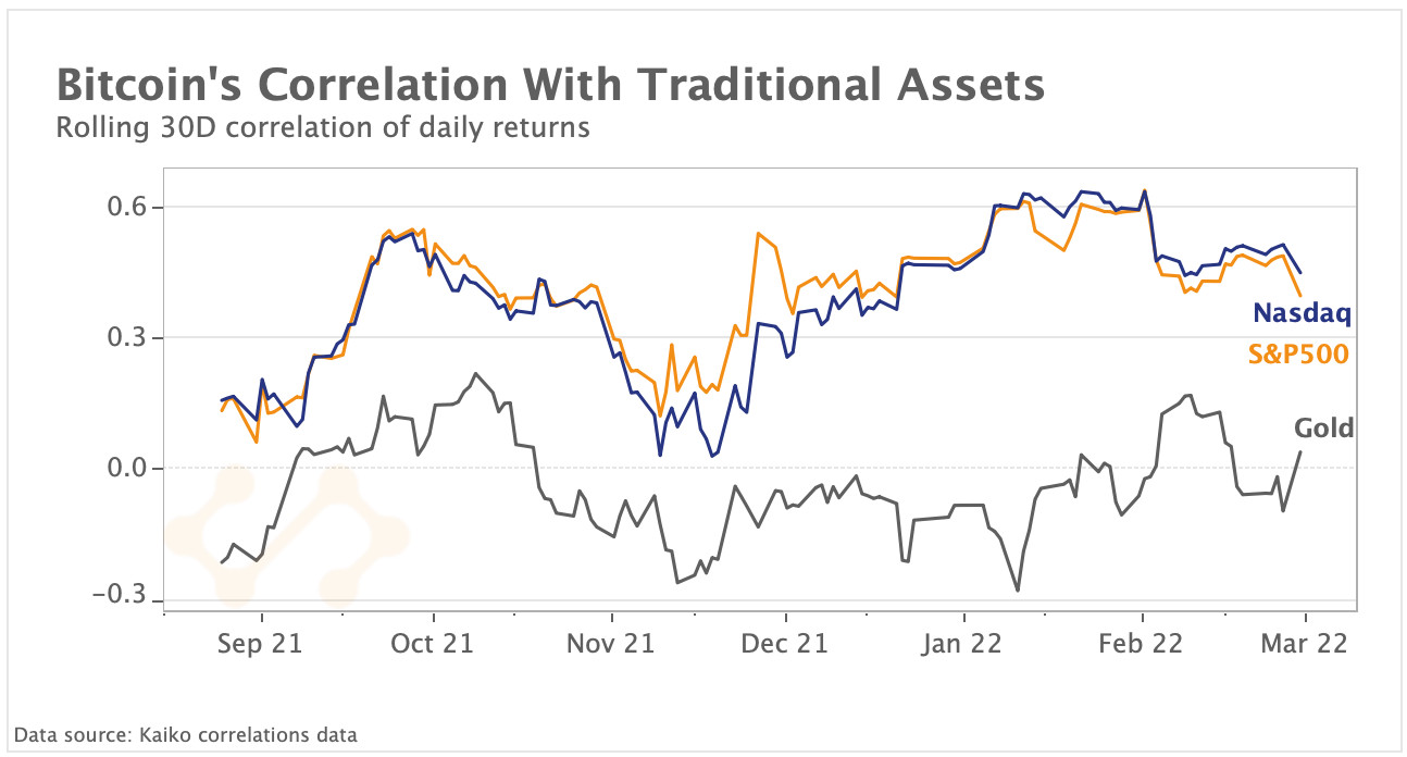 Für einen kurzen Moment erlebten die Kryptowährungsmärkte in der vergangenen Woche eine fast wundersame Erholung. Bitcoin legte an einem einzigen Tag um mehr als 18% zu und nährte damit die Hoffnung, dass das Narrativ des sicheren Hafens für Kryptowährungen in einer Zeit globaler finanzieller Volatilität Realität werden würde. Die Trendwende stand in scharfem Kontrast zu traditionellen Finanzanlagen, die aufgrund der Verschärfung des Konflikts in der Ukraine massive Abflüsse verzeichneten. Doch die Erholung war nicht von Dauer: Bis Sonntagabend hatte sich Bitcoin wieder an die Aktienindizes angekoppelt und die meisten Gewinne abgegeben.