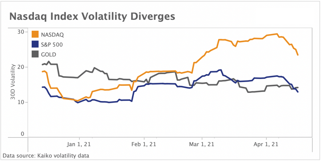 - Volatilität und Korrelationen: Die 30D-Volatilitätskurve des Nasdaq Composite divergiert von anderen traditionellen Finanzanlagen.