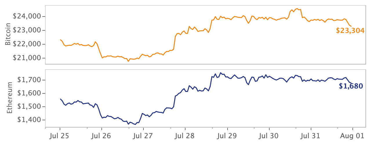 ETH schliesst den Monat Juli mit einem Plus von 54% ab
