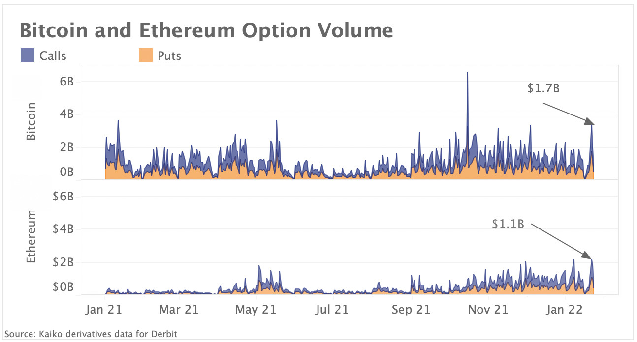 - Derivate: Das Volumen der Ethereum-Optionen auf Deribit erreichte ein Rekordhoch, als die Märkte nach unten drehten.