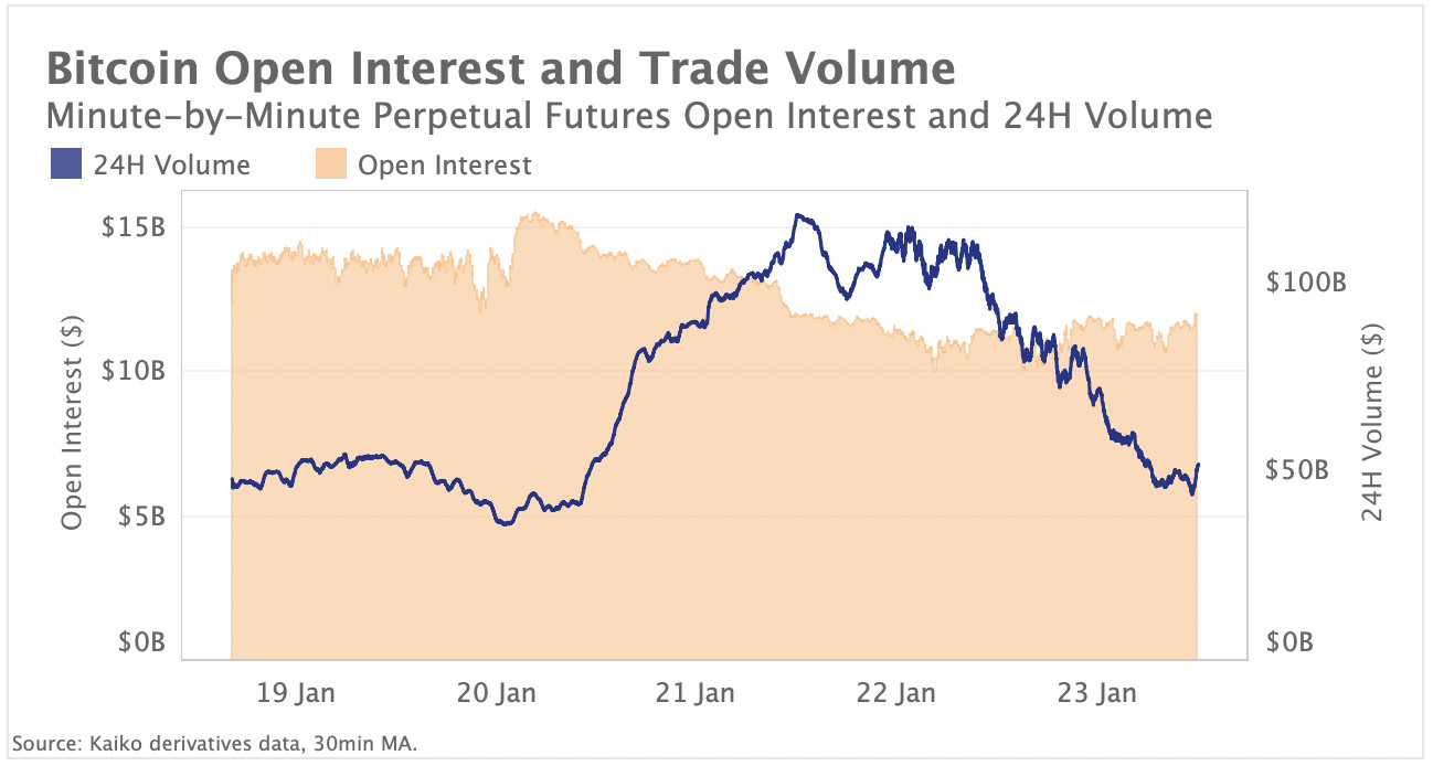Open Interest sinkt, nachdem BTC unter $40k fällt
