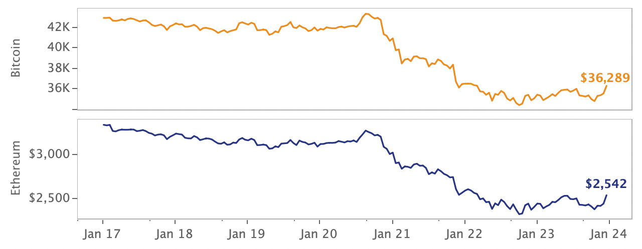 Es war ein blutrotes Meer auf allen Finanzmärkten, wobei Bitcoin die Woche mit einem Minus von 15% beendete und der Nasdaq nach einem holprigen Start in die Berichtssaison ein 6-Monats-Tief erreichte. Der steile Ausverkauf bei Tech-Aktien und die wachsende makroökonomische Besorgnis vor der bevorstehenden Fed-Sitzung erschütterten die Kryptowährungsmärkte und verschonten keinen Large-Cap oder Altcoin. Strukturierte Kryptoprodukte haben in den letzten Wochen ebenfalls erheblich gelitten, wobei der GBTC-Abschlag neue Tiefststände erreichte und die ETFs Nettoabflüsse verzeichneten. An der Regulierungsfront veröffentlichte die Fed ihren mit Spannung erwarteten Bericht über CBDCs, Russland schlug ein Verbot aller Kryptoaktivitäten vor, eine EU-Marktaufsichtsbehörde forderte ein Verbot des Proof-of-Work-Minings, und US-Gesetzgeber hielten eine Anhörung zu den Umweltauswirkungen von Kryptowährungen ab.