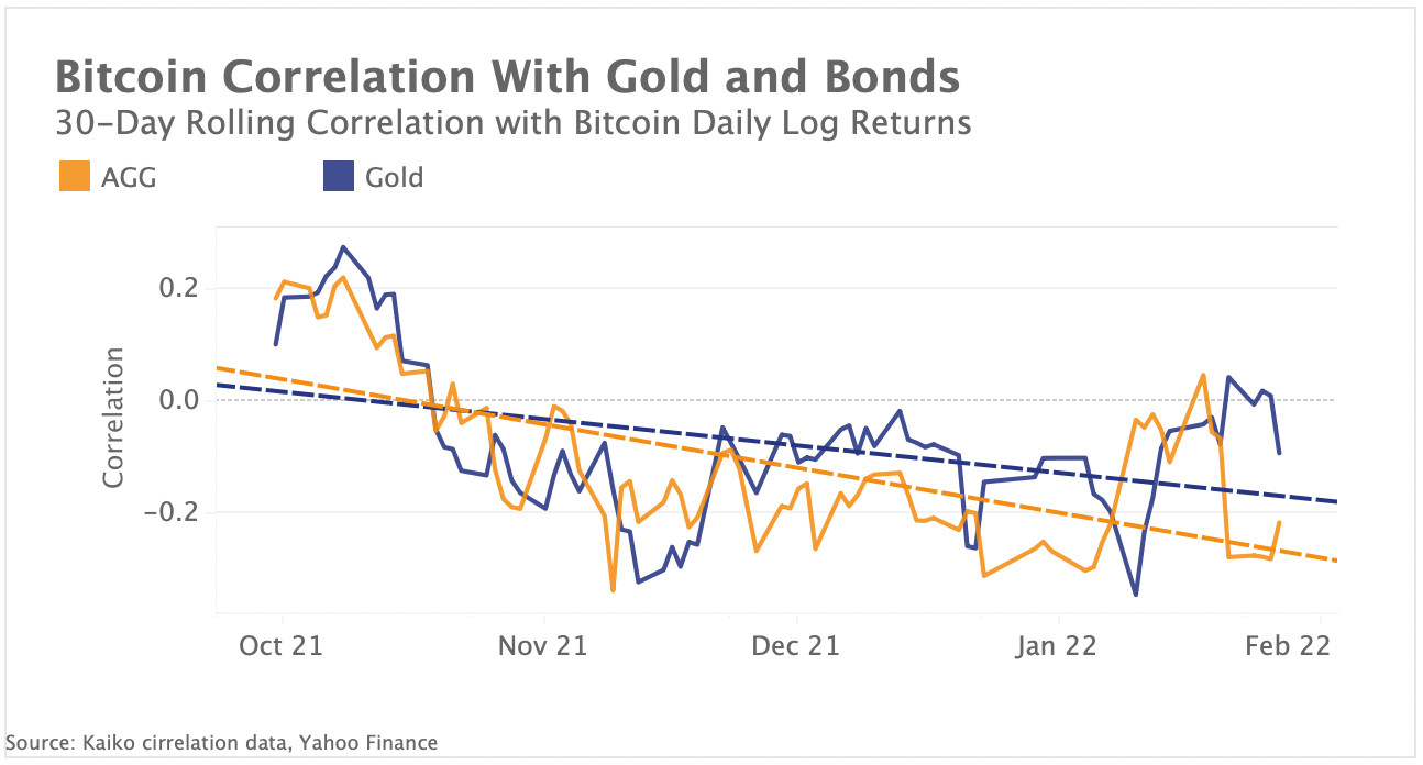 Die Korrelation von Bitcoin mit Gold und Anleihen bleibt negativ