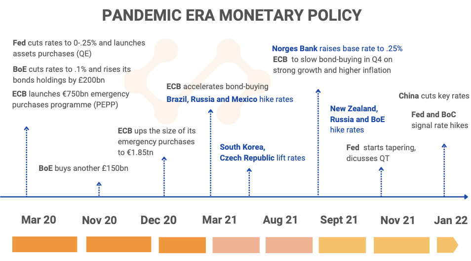 Während jedoch viele Zentralbanken weltweit allmählich zu einer Normalisierung ihrer Geldpolitik nach der Pandemie übergehen, ist das Tempo in den einzelnen Regionen unterschiedlich. In der folgenden Infografik stellen wir einige der wichtigsten geldpolitischen Massnahmen vor.