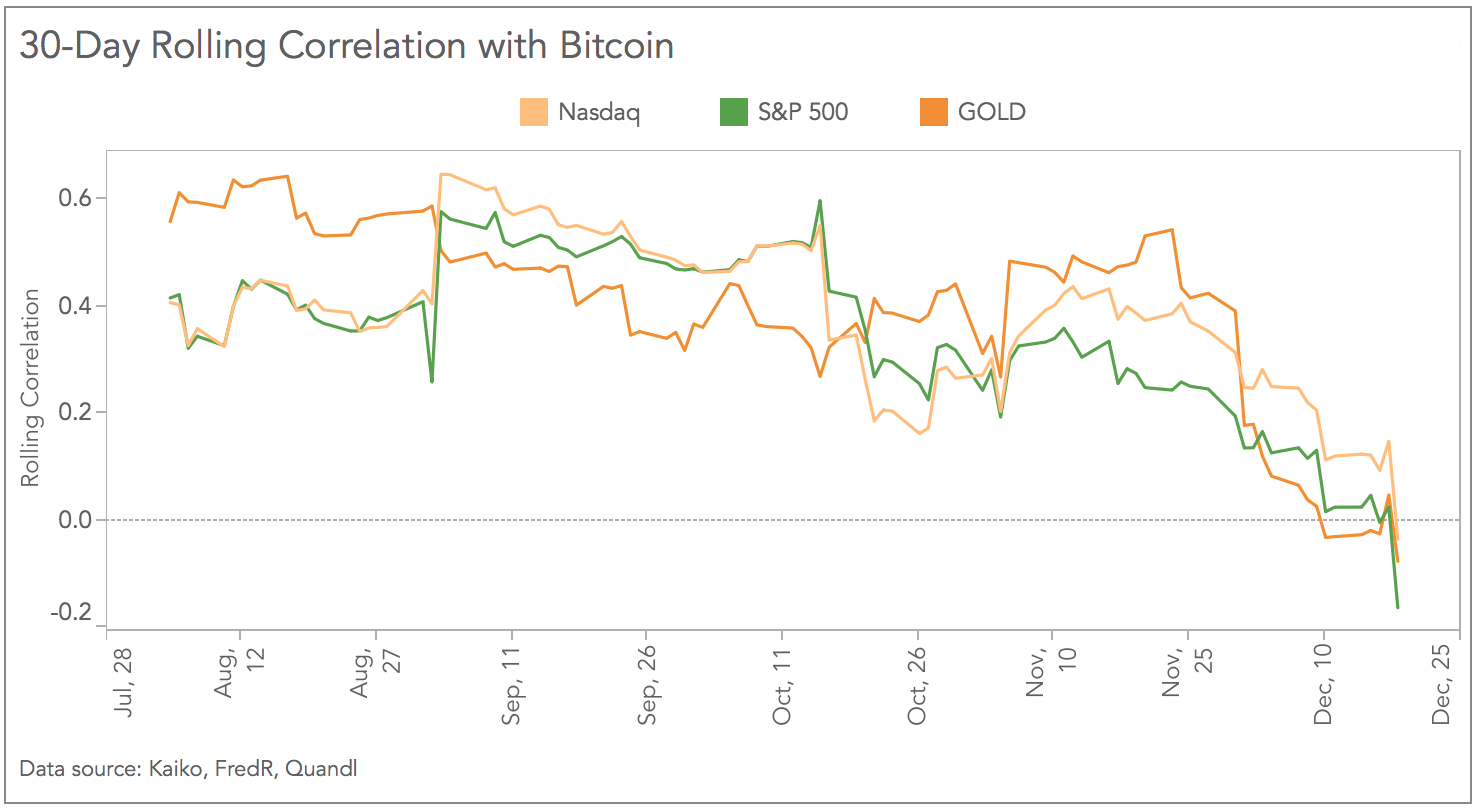 - Volatilität und Korrelationen: Die Korrelation von Bitcoin mit dem S&P 500, Nasdaq und Gold ist nun negativ.