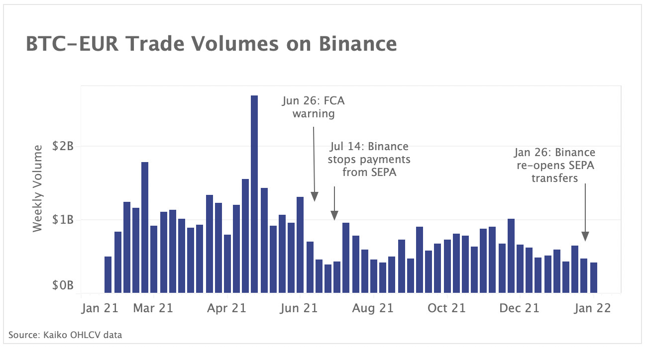 BTC-EUR-Volumen fällt auf Binance stark ab
