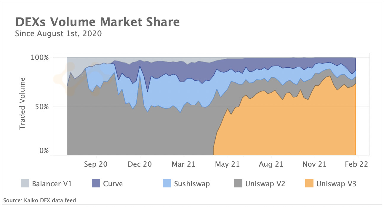 - Volumendynamik: Uniswap macht mehr als 80% des Ethereum DEX-Marktanteils aus.