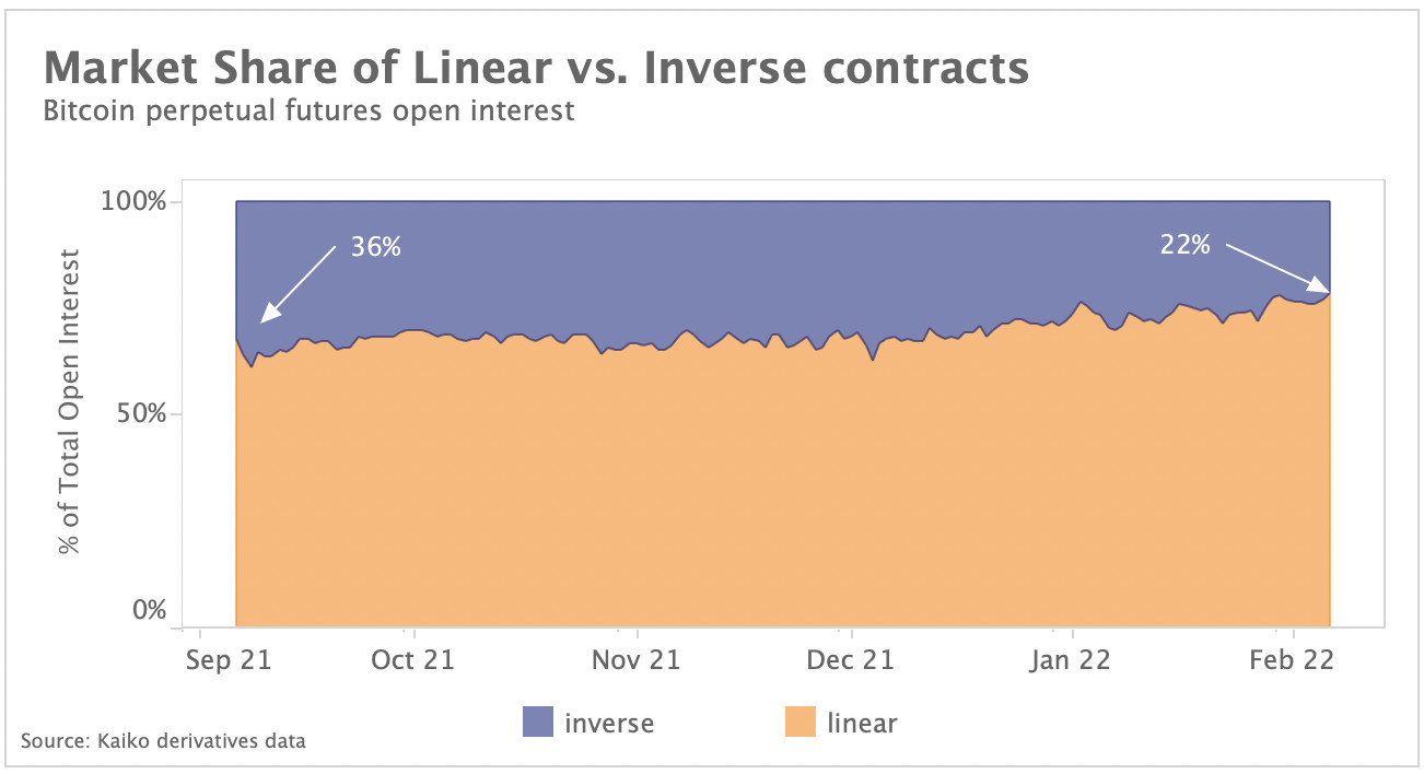 Kryptowährungsderivatemärkte haben in der Vergangenheit bei Preisvolatilität massive Liquidationskaskaden erlitten. Während der jüngste Ausverkauf Hunderte von Millionen an Long-Liquidationen auslöste, scheint das Ausmass der fremdfinanzierten Shakeouts insgesamt zu sinken. Ein Grund dafür könnte sein, dass Händler zunehmend lineare Kontrakte gegenüber inversen bevorzugen.