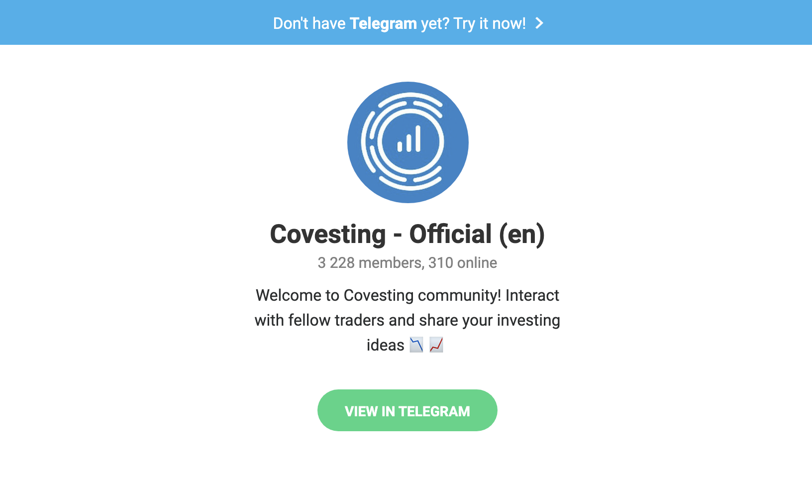 Sie können sich auch für die Covesting Handels-Community auf Telegram anmelden, wo einige Händler ihre Gedanken hinter Strategien diskutieren, die zusätzlichen Komfort und Vertrauen bieten können, bevor sie Kapital einsetzen und eine Strategie verfolgen.