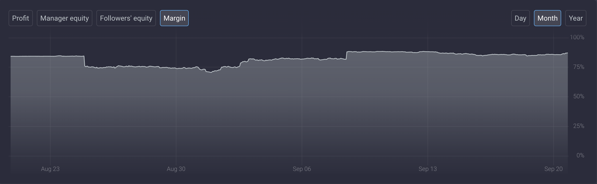Es ist auch wichtig, alle Strategien zu vermeiden, die regelmässig einen grossen Teil der Marge beanspruchen. Jeder findet sich manchmal übermässig exponiert, mehr als er vielleicht erwartet hat, und bewegt eine gewisse Marge herum, um eine Position zu schützen. Seltene Fälle können entschuldigt werden. Allerdings sind diejenigen, die dies regelmässig tun, eindeutig risikobereit und nehmen ihre eigenes Kapital nicht ernst, ganz zu schweigen das von ihren Followern.