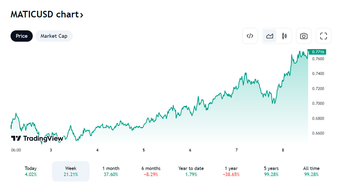 Polygon (MATIC) hat im dritten Quartal eine lobenswerte Wertentwicklung gezeigt, die seine Widerstandsfähigkeit und Anpassungsfähigkeit auf dem wettbewerbsintensiven Markt für dApp-kompatible Blockchains widerspiegelt. Das Netzwerk hat einen Anstieg der Anzahl aktiver Adressen verzeichnet, was ein positiver Indikator für das Engagement der Nutzer und die Netzwerkauslastung ist.
